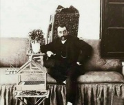 مظفرالدین شاه قاجار در اروپا به هنگام بازدید از یک عکاسی.jpg