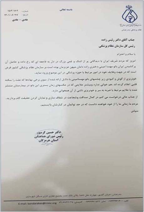 | ۲۵ سپتامبر ۲۰۲۲، ساعت ۰۷:۳۲ | نامه نظام پزشکی هرمزگان.JPG (پرونده) | ۴۱ کیلوبایت | ۱ | ||