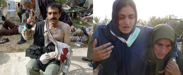 پرونده:مجروحین در حملات نیروهای عراقی به کمپ اشرف.jpg