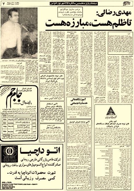 کلیشه یک روزنامه پس از انقلاب در مورد مهدی رضایی