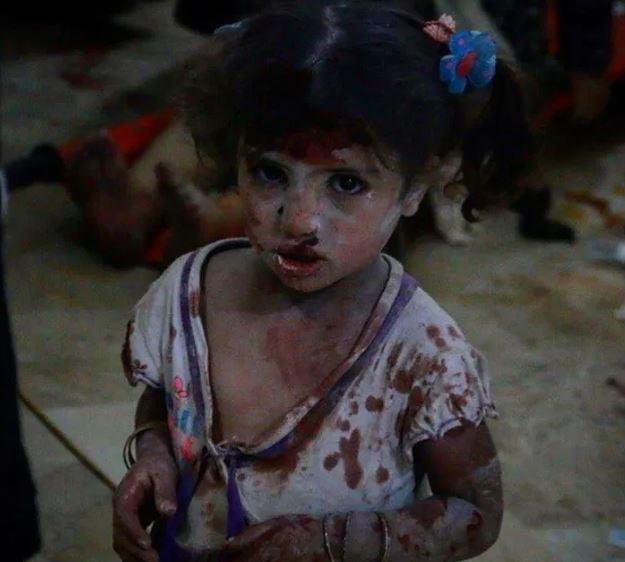 پرونده:یک کودک در حلب زیر بمباران بشار اسد.JPG