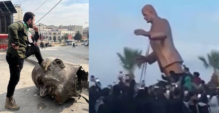 پرونده:پایین کشیدن مجسمه حافظ اسد (پدر بشار اسد).JPG