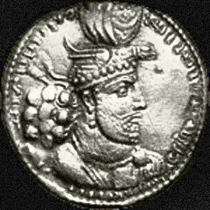 تصویر سکه ضرب شده منقش به چهره بهرام چوبین