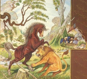 صبح روز بعد رستم بر پشت رخش نشست و به راهش ادامه داد.