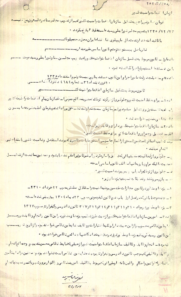 3. فرمان تشکیل سازمان اطلاعات و امنیت کشور توسط وزیر کشور وقت