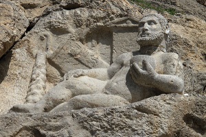 مجسمه هرکول که تندیسی از تجاوز اسکندر گجستک و حکومت سلوکیان به ایران می‌باشد در بیستون در سال ۱۳۲۷ هجری هنگام احداث جاده آسفالته همدان به کرمانشاه در دامنه کوه کشف شد. این اثر شخص نیرومندی را نشان می‌دهد که به پهلوی چپ به روی نقش شیری در سایه درختی لمیده‌است و در دست چپ پیاله ای از شراب در دست دارد و دست چپش را بروی پای راستش قرار داده‌است.