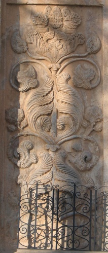 تزیینات گچی ناپایدار هستند و آثار زیادی تا به امروز نمانده‌است. با گذشت زمان، آثار گچی مرتباً تعمیر می‌شدند. گچ‌بری‌های کاخ شاپور در بیشاپور، در قرون اولیه اسلامی نیز تعمیر شده‌است. یکی از آثار با ارزش گچی ساسانی از چال طرخان ری به دست آمده و در موزه فیلادلفیا نگهداری می‌شود که در آن پیروز شاه ساسانی در حال شکار به تصویر درآمده است. اکثر صحنه‌های گچ‌بری شده ساسانی در قابی مربع شکل با حاشیه طرحهای هندسی قرار دارند.[۶]