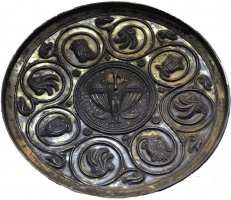 بشقاب نقره با نقش طاوس-سده سوم میلادی ساسانی- موزه رضا عباسی