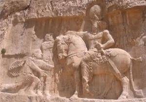 نقش برجسته‌ای که نشان می‌دهد والرين امپراتور روم در برابر شاپور يکم به زانو درآمده و التماس مي کند