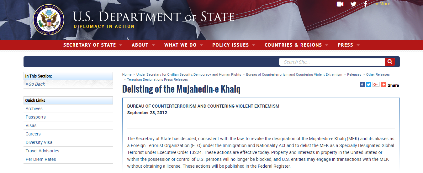 ۱۴ ژوئن ۲۰۱۸، ساعت ۱۰:۲۵ | خبر خروج نام مجاهدین از لیست تروریستی-وبسایت وزارت خارجه آمریکا.PNG (پرونده) | ۳۶۰ کیلوبایت | خبر خروج نام مجاهدین از لیست تروریستی-وبسایت وزارت خارجه آمریکا | ۱ | |