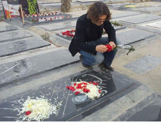 پرونده:آرش صادقی بر سر مزار مادرش.JPG