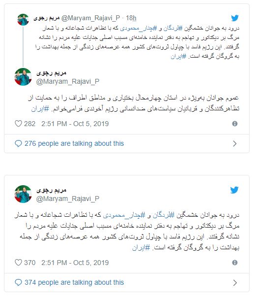 پرونده:توئیت مریم رجوی در مورد تظاهرات لردگان.JPG