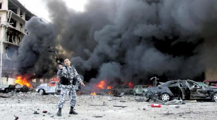 پرونده:صحنه انفجار لحظاتی پس از ترور رفیق حریری.JPG