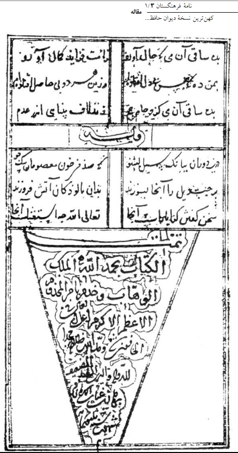 پرونده:صفحه آخر نسخه خطی حافظ۸۰۳قمری.jpg