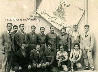 این عکس را تختی با کشتی گیران قوچانی گرفته است