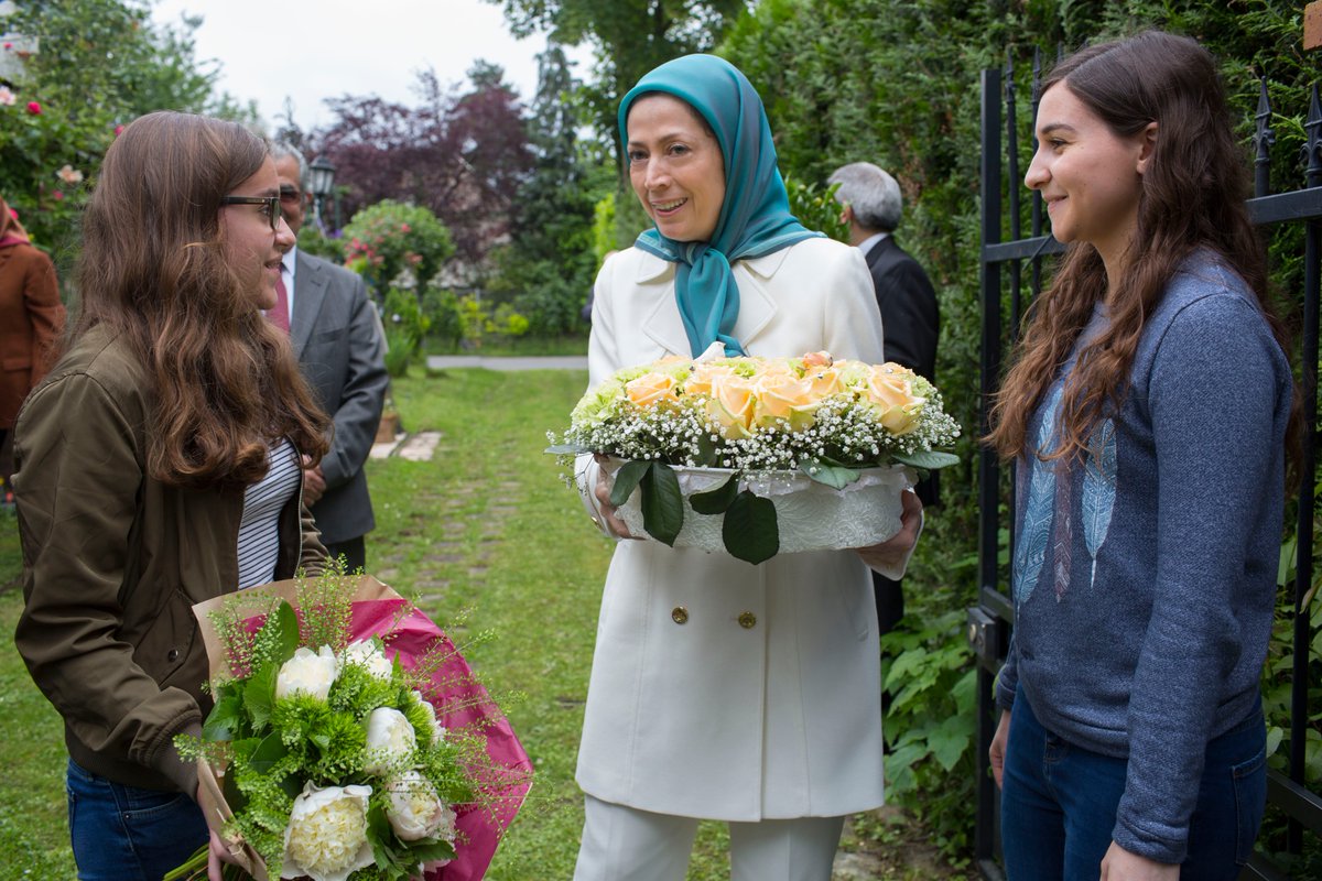 پرونده:مریم رجوی و دو دختر جوان از هواداران مجاهدین خلق.jpg