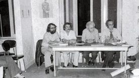 احمد شاملو، غلامحسین ساعدی، باقر پرهام، محسن یلفانی و اسماعیل خویی اعضای هیات دبیران کانون در جلسۀ کانون نویسندگان ایران