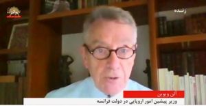بسیار خوشحالم که نزد شما هستم. اکنون زمان بسیار تاریکی است که در این رژیم در ایران حاکم است و من مطمئن هستم در سالهای آینده تغییرات زیادی بهوقوع خواهد پیوست. من بهعنوان عضوی از جی ۷ به جهان سفر کردم؛ و برای رسیدن به یک توافق علیه برنامه اتمی رژیم ایران و تنشهایی که ایجاد کرده اقدام کردم اما شکست خوردیم؛ چرا که نتوانستیم به تغییر در ایران برسیم. من اکنون این را بهرسمیت میشناسم که بدون یک پیام روشن علیه حکومت و دیکتاتوری مذهبی در ایران امکان ندارد که بشود یک فصل جدیدی برای آزادی و ارزشها در جهان بنویسیم. بنابراین تنها راهی که اتحادیه اروپا بتواند پیش برود این است که درس بگیرد از اشتباهات گذشته چرا که ما خیلی تلاش کردیم که به توافق برسیم و از هیچ چیز کوتاهی نکردیم ولی غیرممکن بود. من میخواهم به شما مبارزین و جنگجویان برای آزادی ایران که به ما گفتید که این غیرممکن است، و این کار را نکنید، و نمیتوانید به نتیجه برسید ولی ما تلاش کردیم و شکست خوردیم.